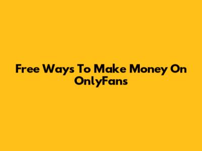 Free Ways To Make Money On OnlyFans